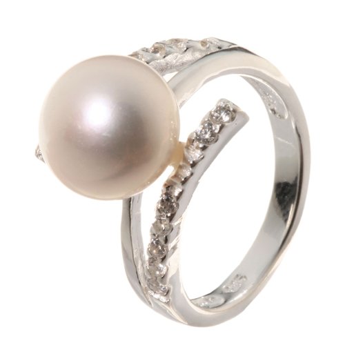 Pearl & Silver - B4525B58 - Bague Femme - Argent fin 925/1000 4 gr - Perle d'eau douce - Rond - Anneau à 3 "branches" dont 2 ornées de zirconiums - Blanc avec des nuances roses - T 58